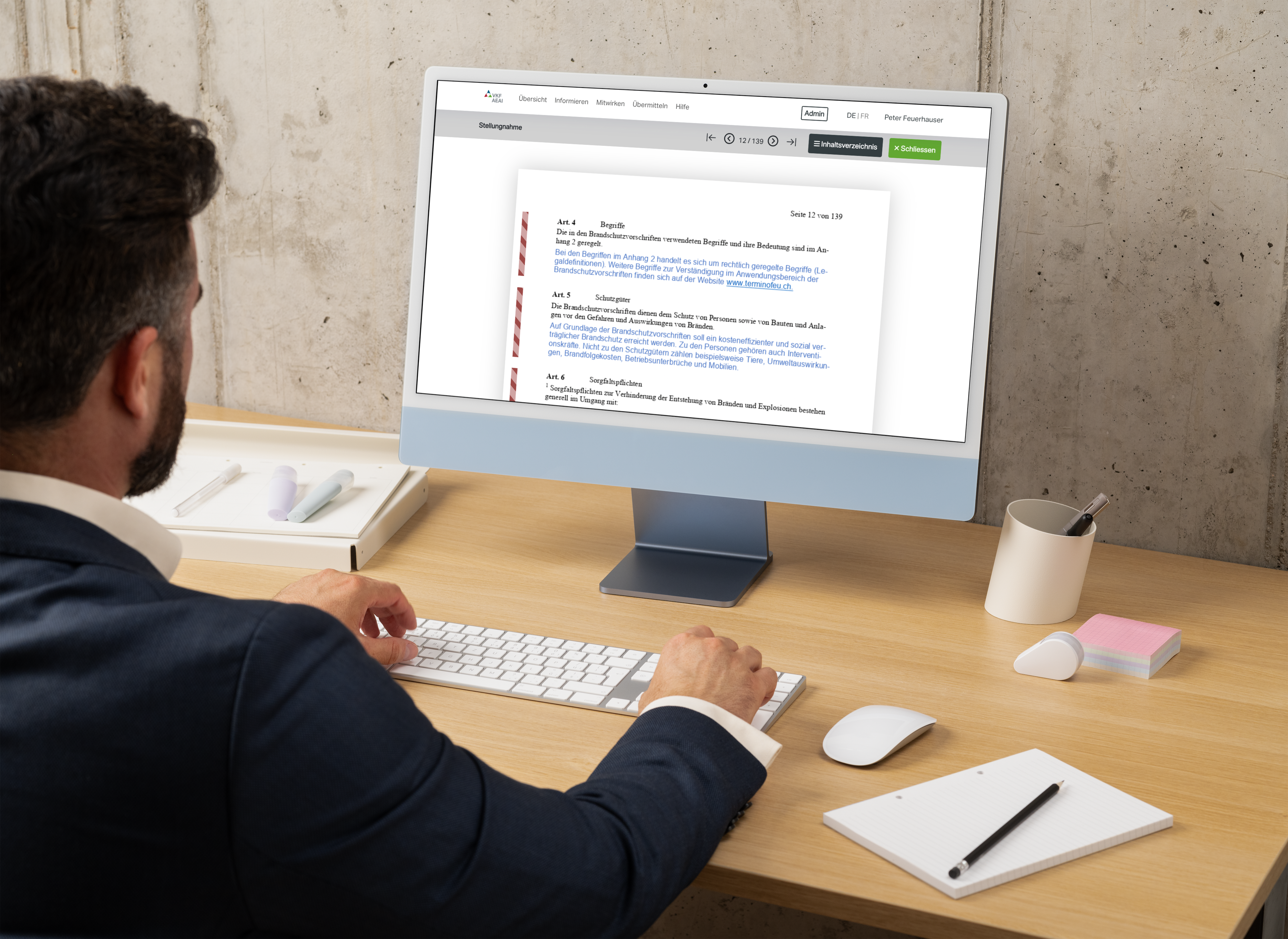 Die Vereinigung Kantonaler Feuerversicherungen (VKF) ist verantwortlich für die Erarbeitung der schweizweit verbindlichen Brandschutzvorschriften. Für die Revision 2026 setzt die VKF auf die E-Mitwirkungsplattform – und führte damit mehrstufige und komplexe Konsultationen durchgängig digital durch.